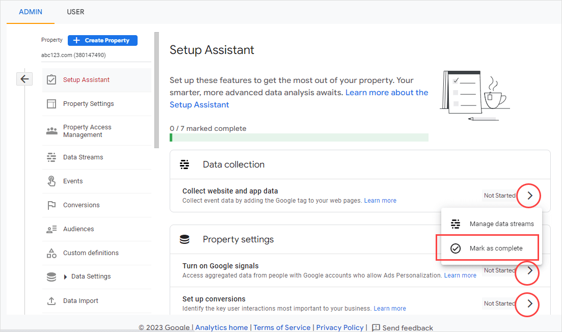 You can always go back and adjust or reconfigure things in your GA4 property at a later date. But at least this gets rid of those annoying alert messages.